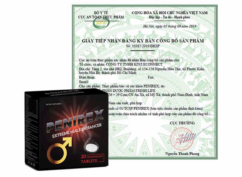 Viên sủi Penirex sản xuất ra đã được Bộ Y tế cấp phép lưu hành toàn Việt Nam, đã được chứng minh hiệu quả xuất sắc của nó trong việc cải thiện chức năng sinh lý và dục tình cho nam giới.